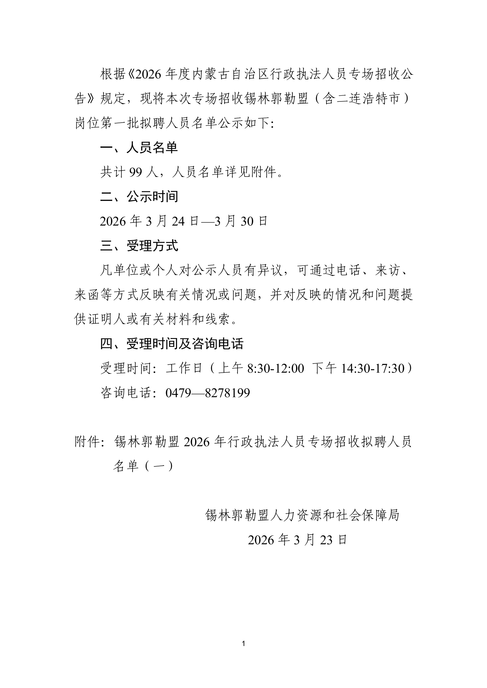 2026年度內(nèi)蒙古自治區(qū)行政執(zhí)法人員專場招收(錫林郭勒盟崗位)擬聘人員公示(一)
