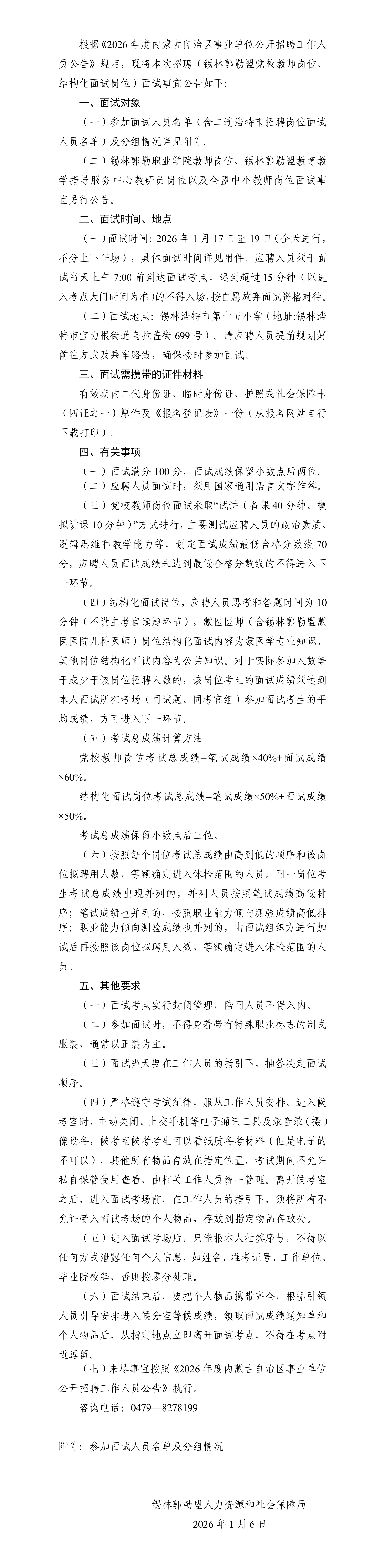 2026年度內蒙古自治區(qū)事業(yè)單位公開招聘(錫林郭勒盟黨校教師崗位、結構化面試崗位)面試公告