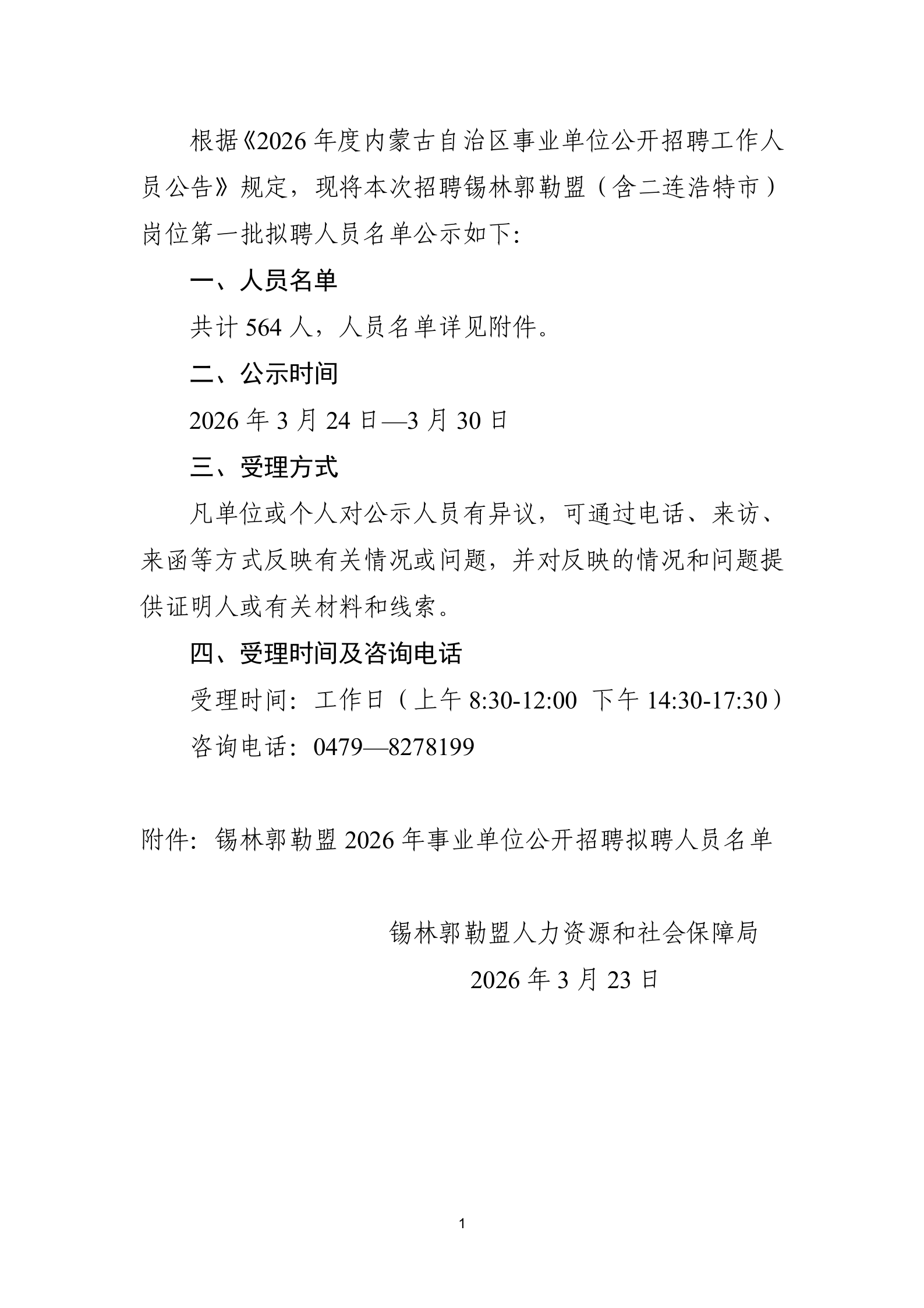 2026年度內(nèi)蒙古自治區(qū)事業(yè)單位公開招聘(錫林郭勒盟崗位)擬聘人員公示(一)
