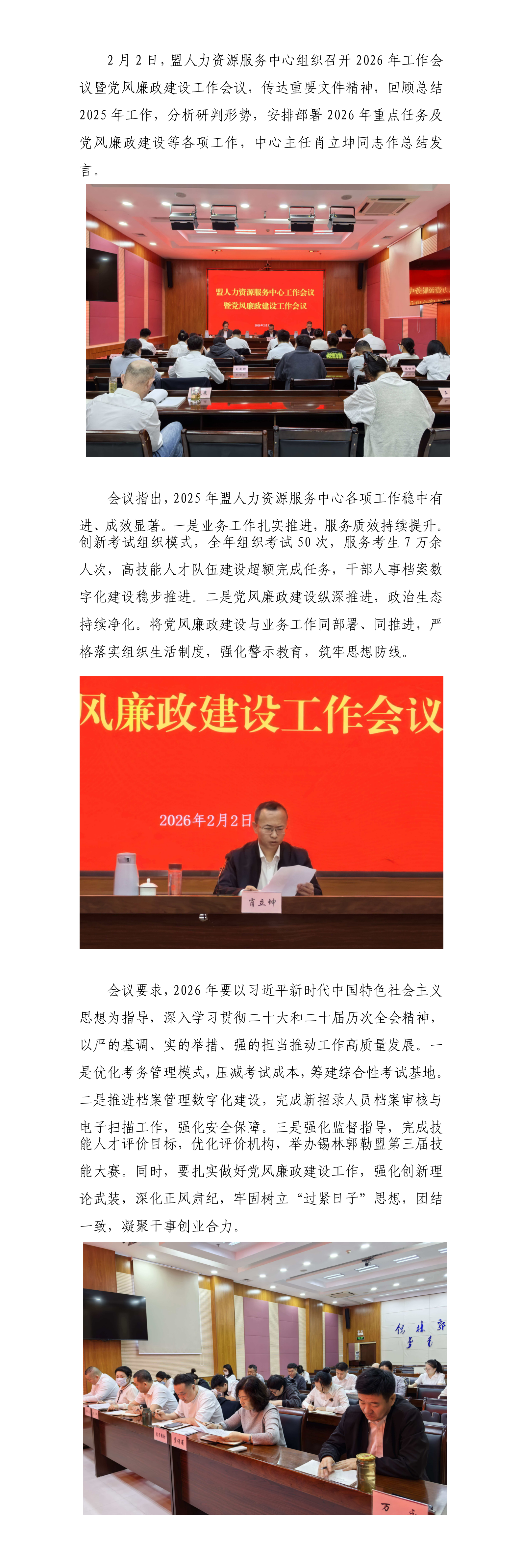 盟人力資源服務(wù)中心召開 2026年工作會議暨黨風廉政建設(shè)工作會議